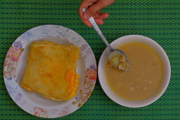 Roti jala yang disajikan dengan kuah kari atau yang disebut ragit ini juga tak boleh terlewatkan. Meski tak sepopuler pempek atau mie celor, ragit kerap disajikan sebagai menu sarapan di restoran hotel.